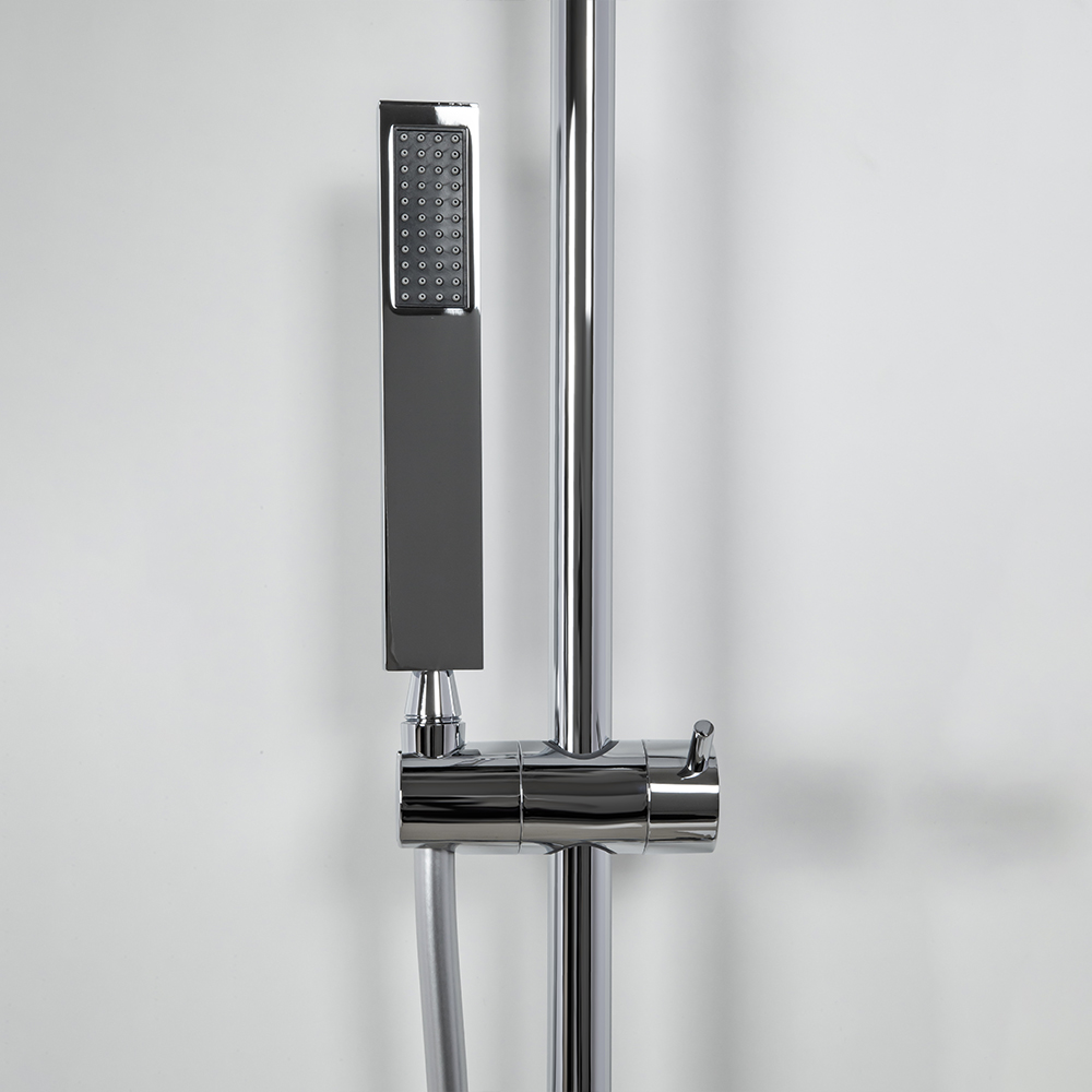 смеситель; эксцентрики; душевая стойка; верхний душ; ручной душ; душевой шланг; инструкция.