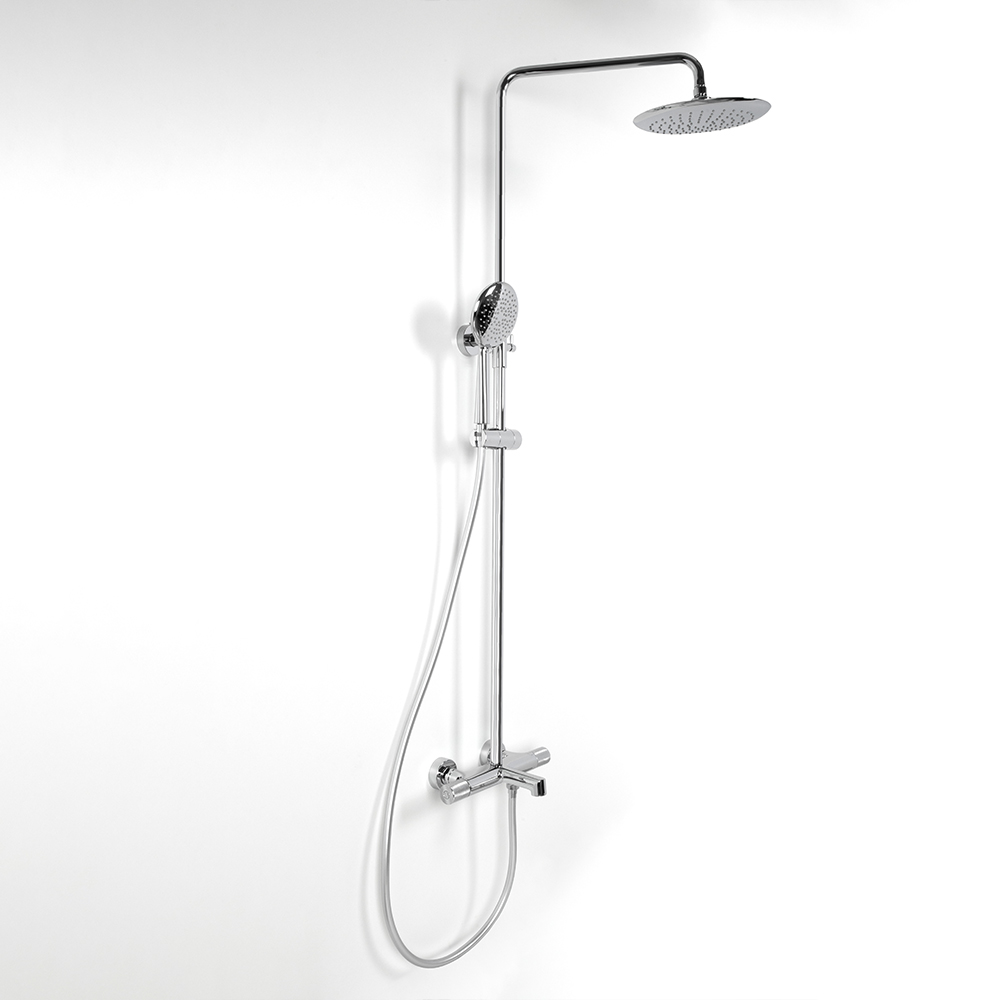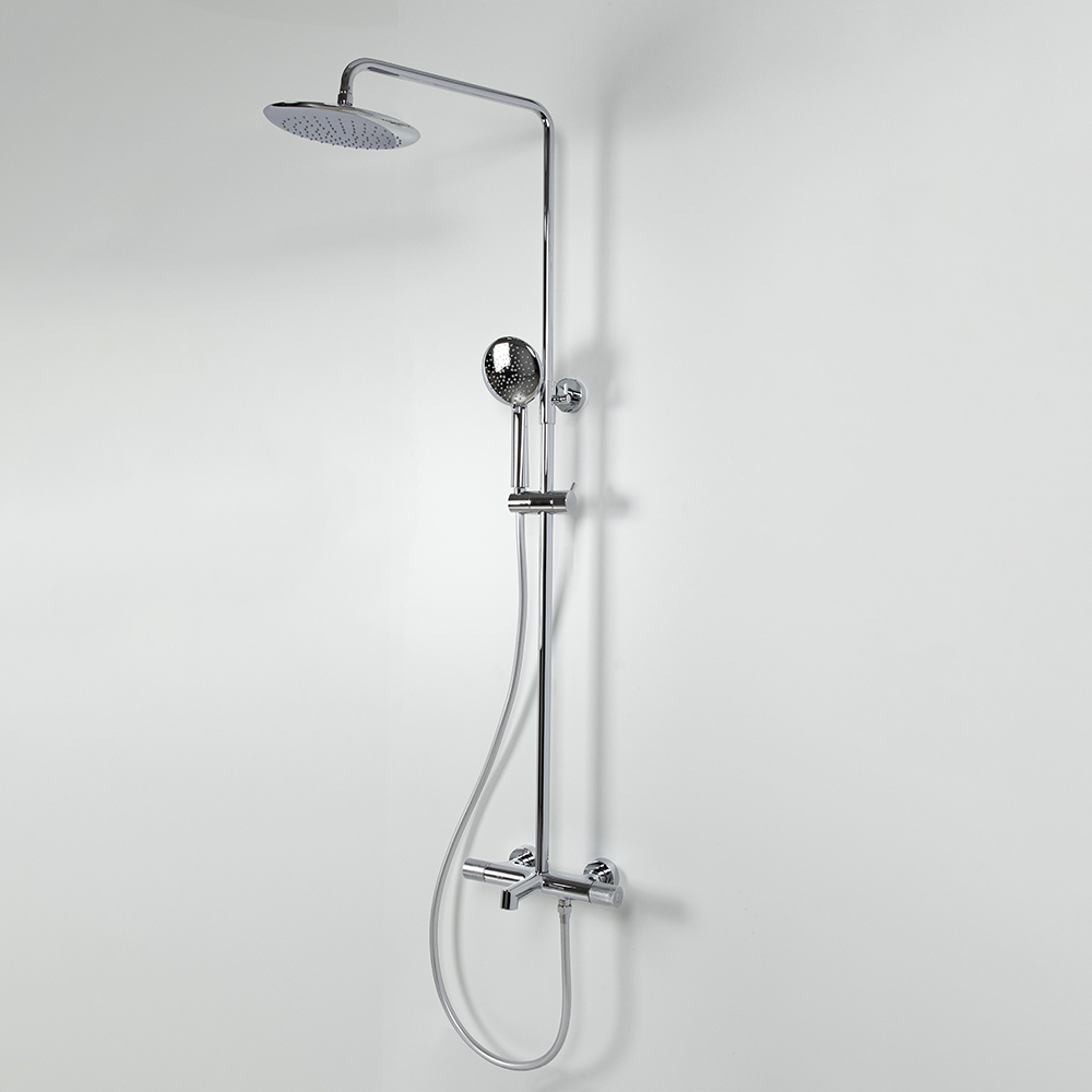 душевая стойка; комплект эксцентриков; термостат; верхний душ; душевой шланг; ручной душ; инструкция.