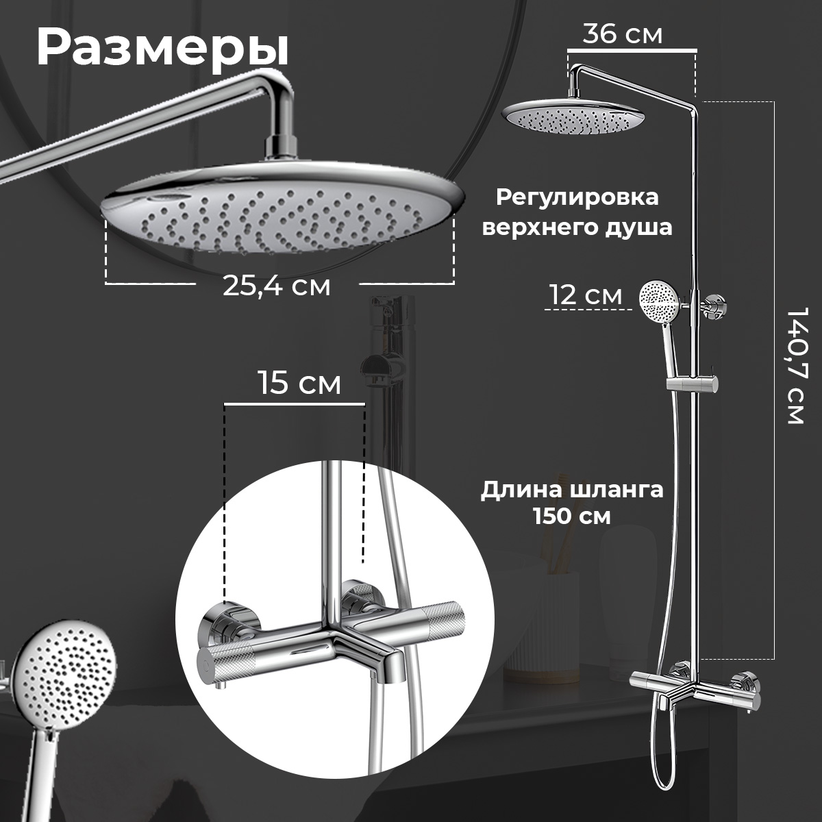 Размер верхнего душа (см)