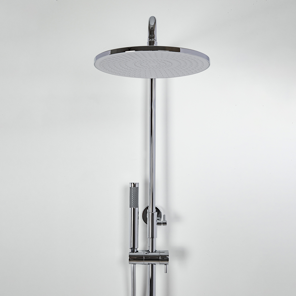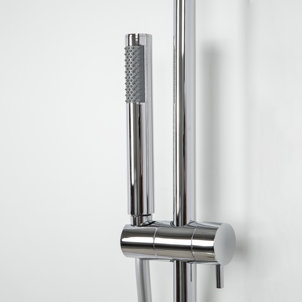 душевая стойка; комплект эксцентриков; смеситель; верхний душ; душевой шланг; ручной душ; инструкция.