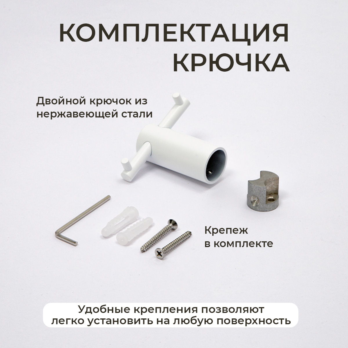 Крючок AVS Slimmer двойной, белый матовый