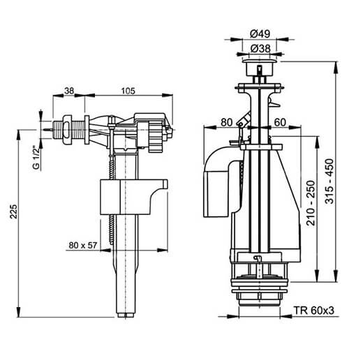 Арматура для унитаза 1/2 двойной смыв Alcaplast SA08