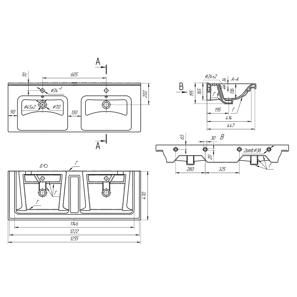 Раковина Dreja Гармония 641938 125 см